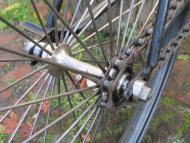 Nickle etc. is original and very well preserved on this safety bicycle. The half-round clamps on the rear axle have been remade by the current owner. We do not know how the original parts should look.